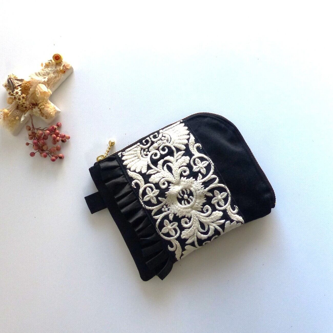 〈再販〉”中身がよく見える”刺繡リボンのL字ファスナーminiポーチ◇刺繍A