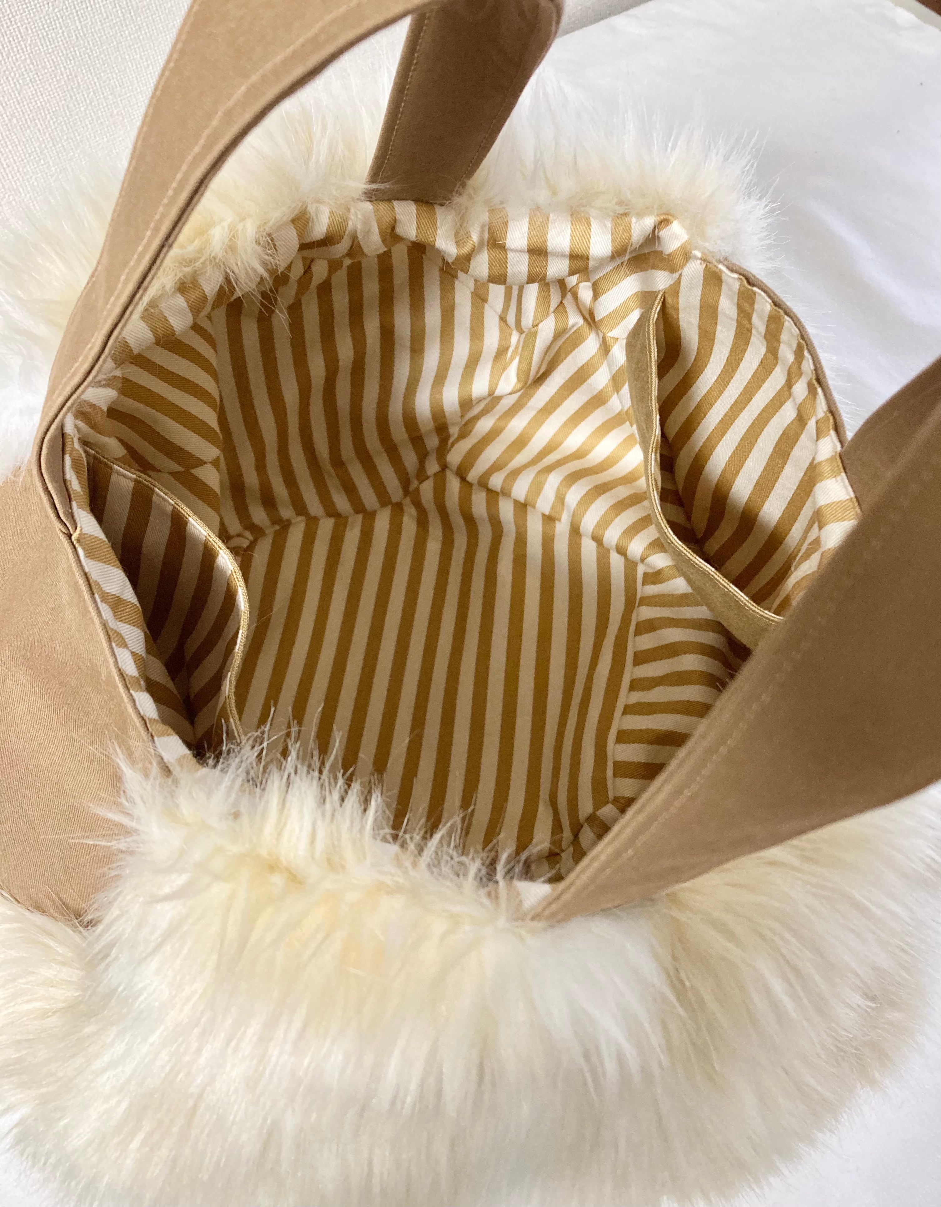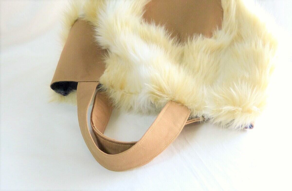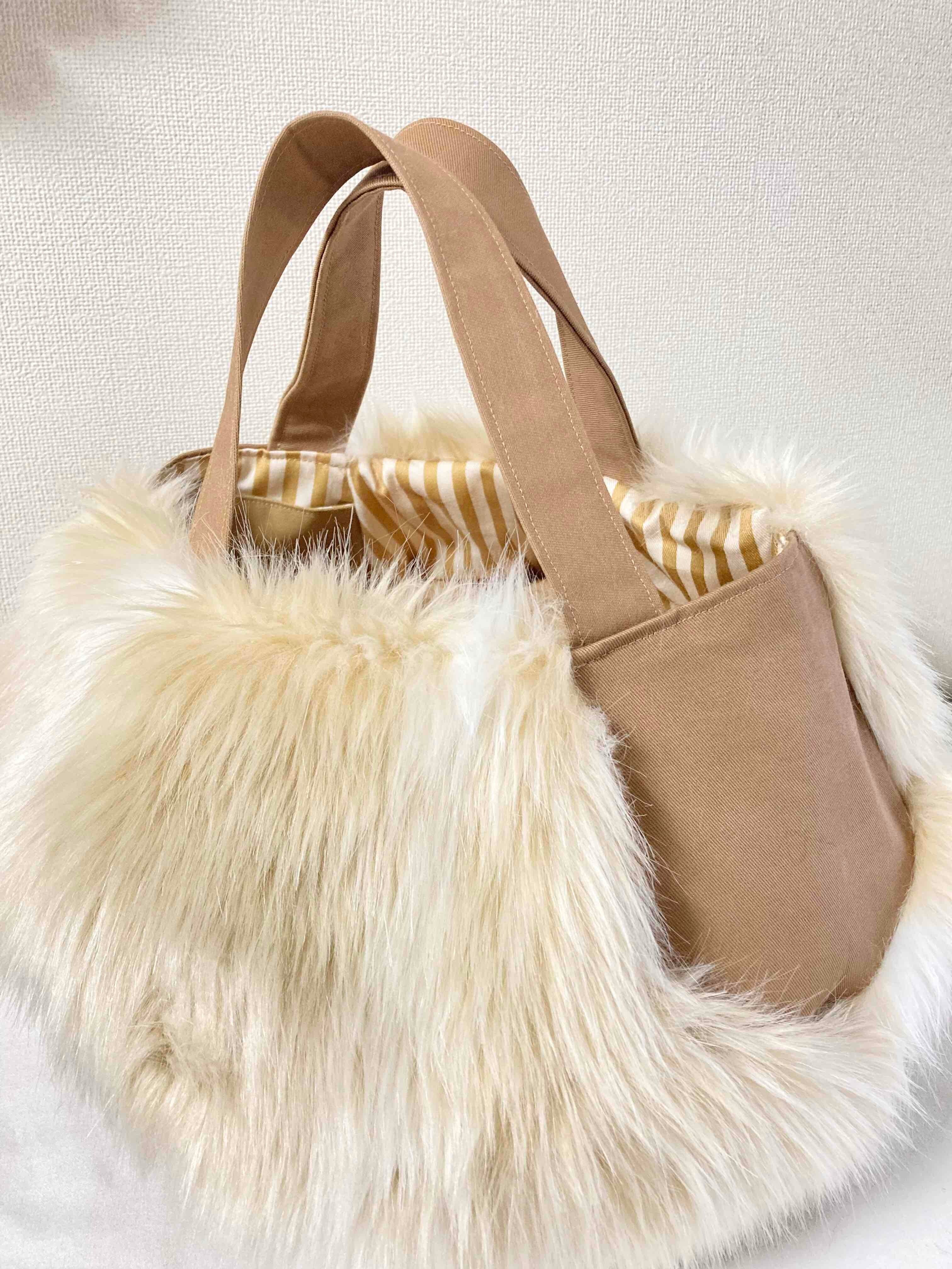 【送料無料】エコファーパッチワークトート(L)◆ベージュMix
