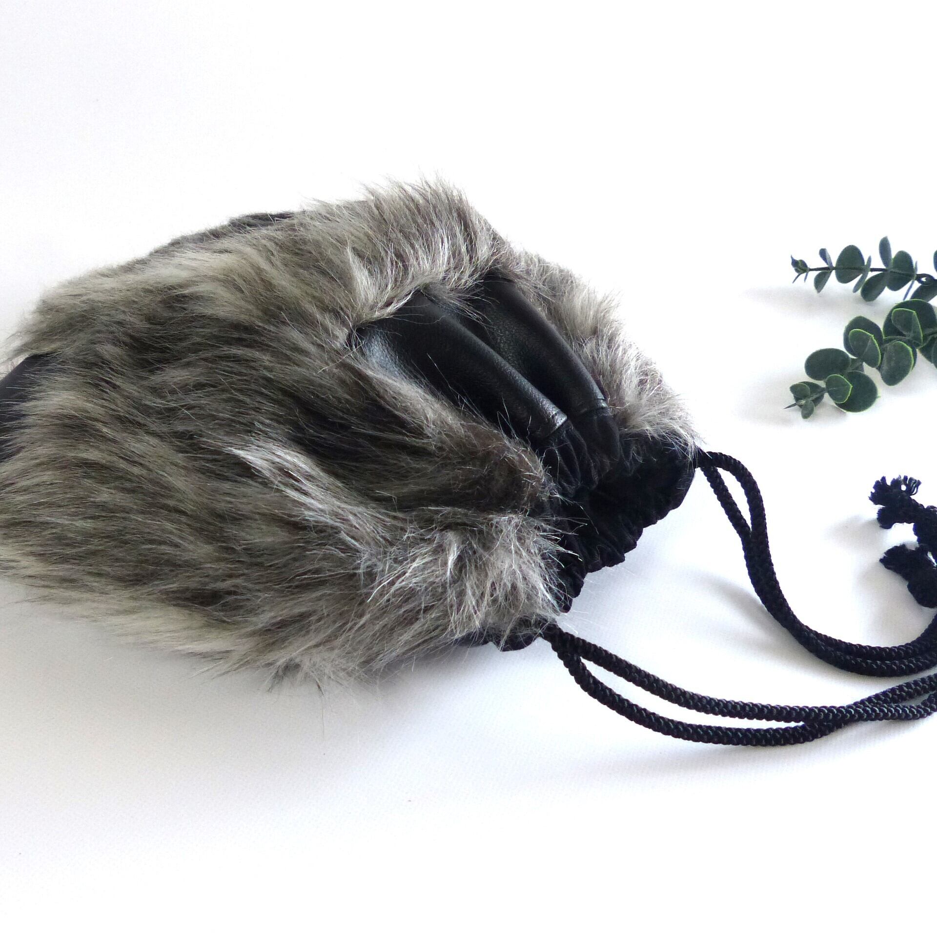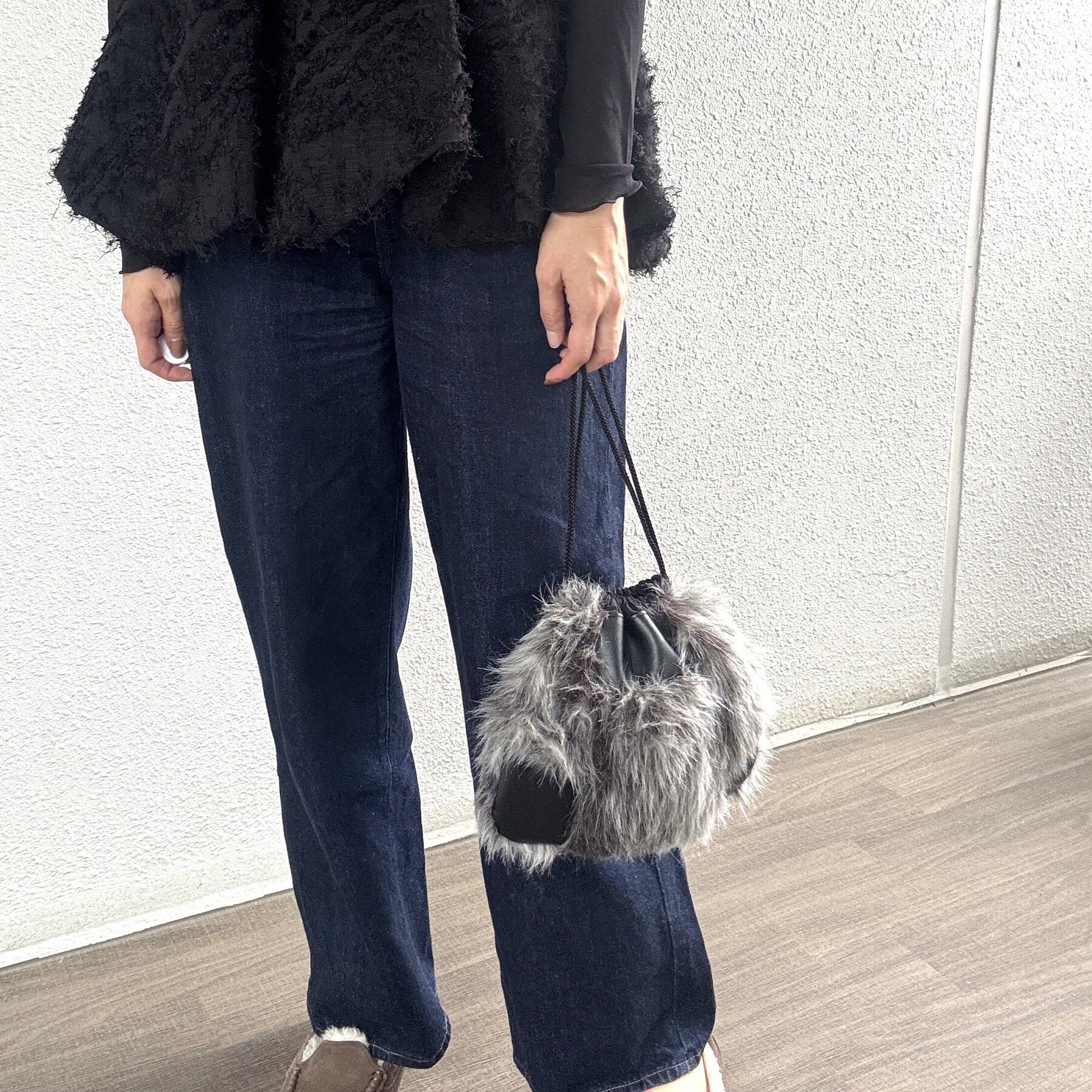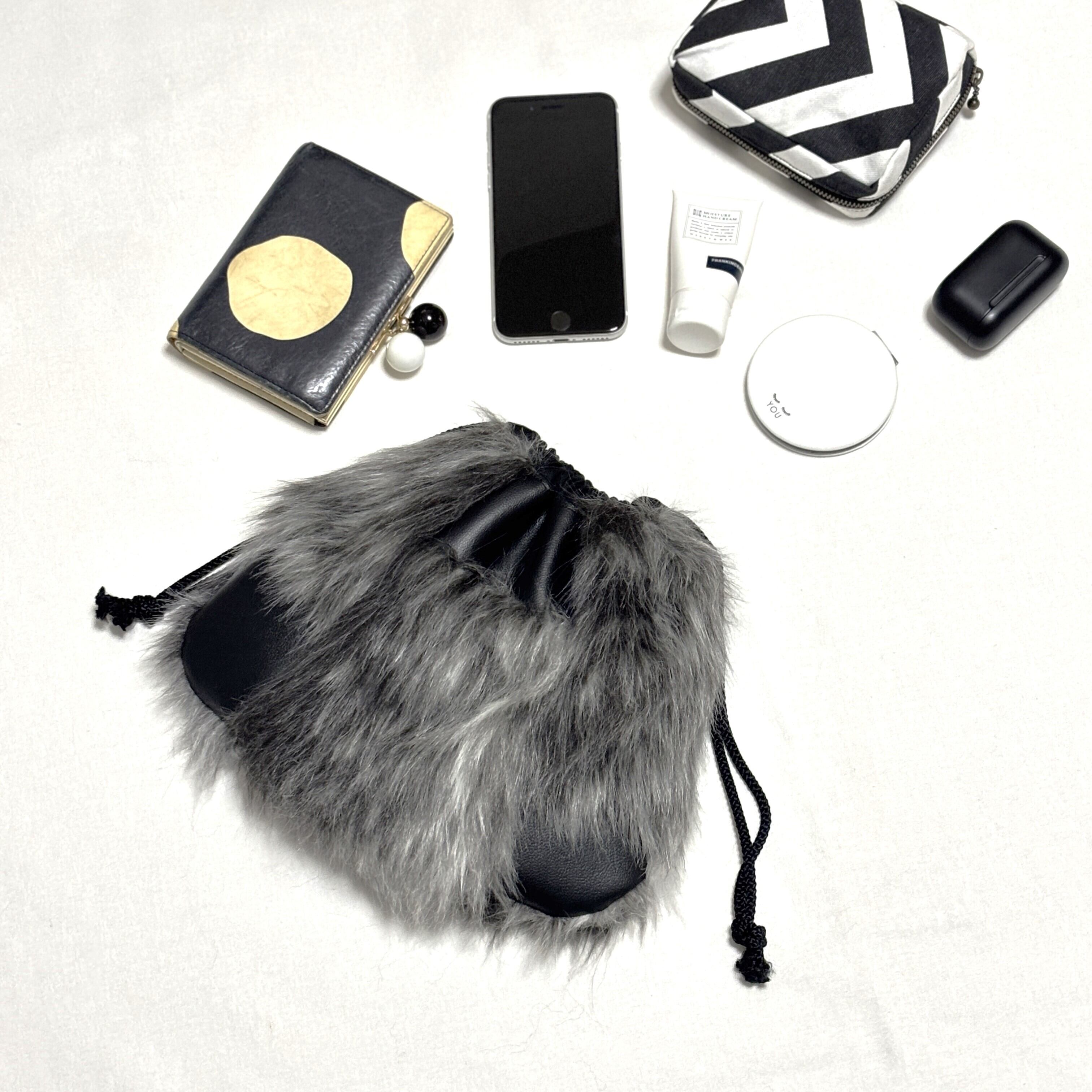 ファーと合皮のコンビでスタイリッシュな巾着バッグです