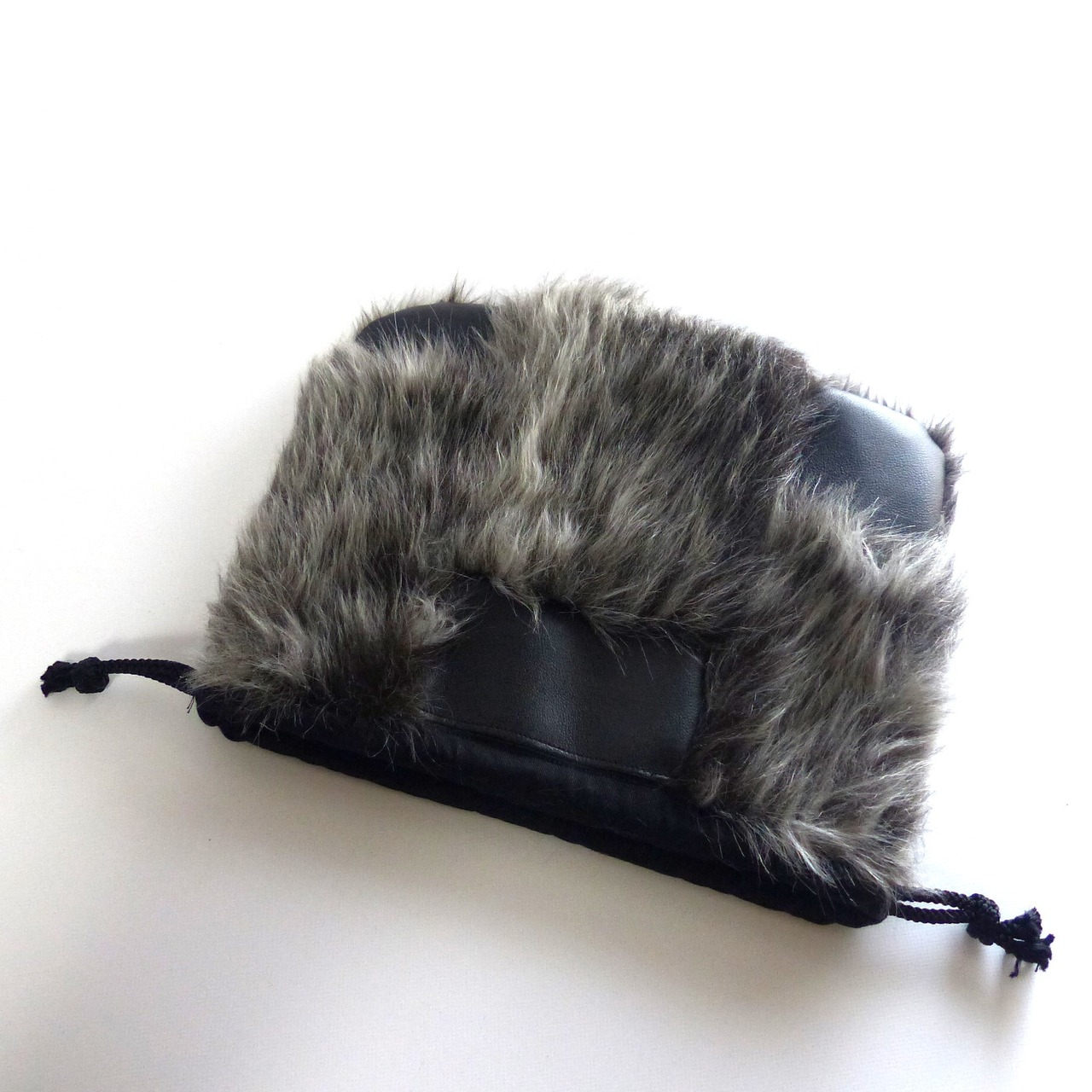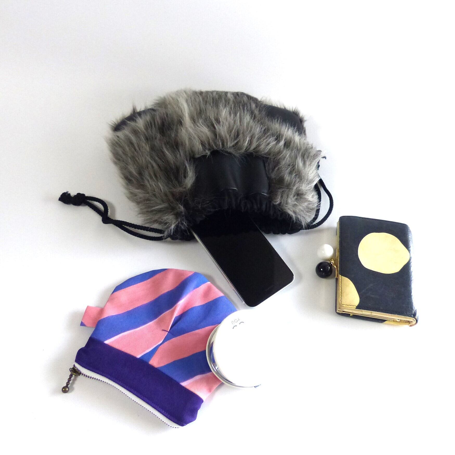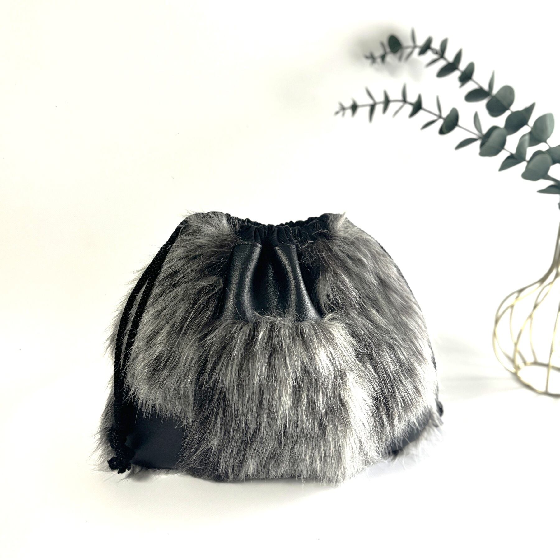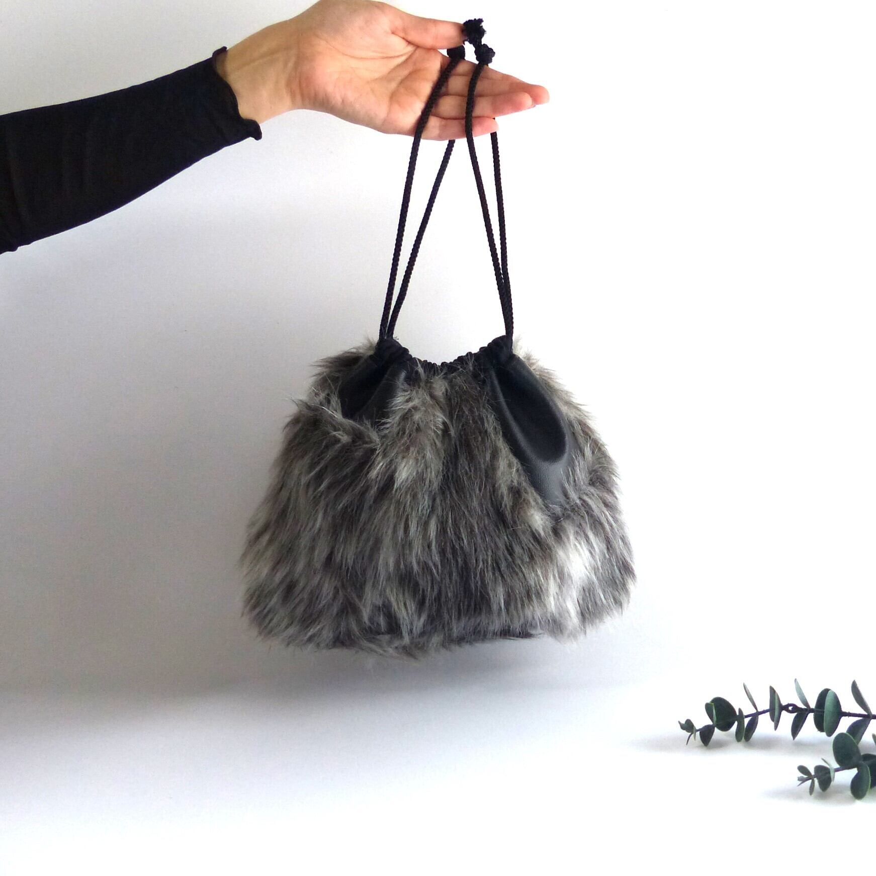 ファーと合皮のコンビでスタイリッシュな巾着バッグです