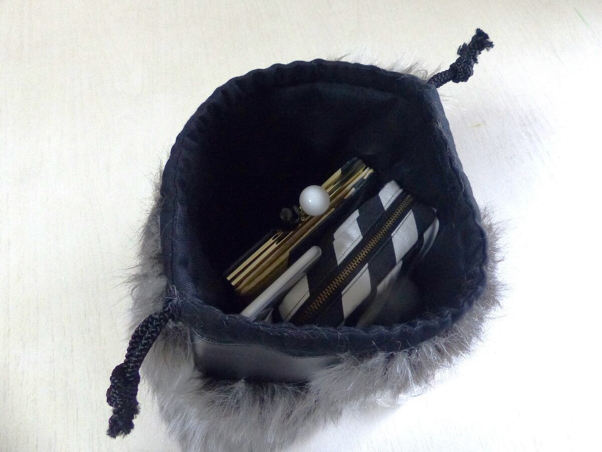 存在感たっぷりのエコファー巾着